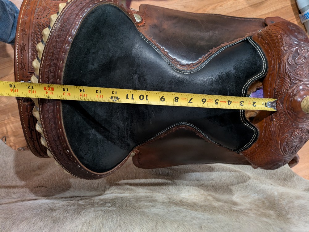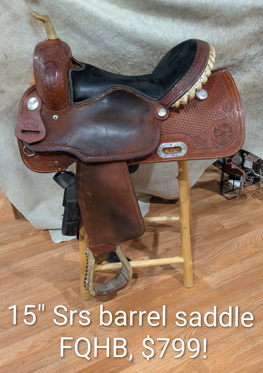 Used SRS barrel saddle, 15" FQHB (which is standard for SRS, please see comparison measurements:)