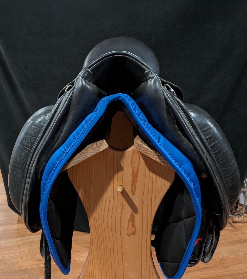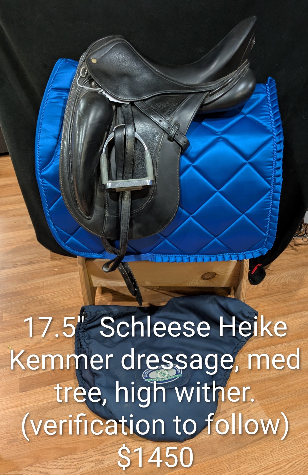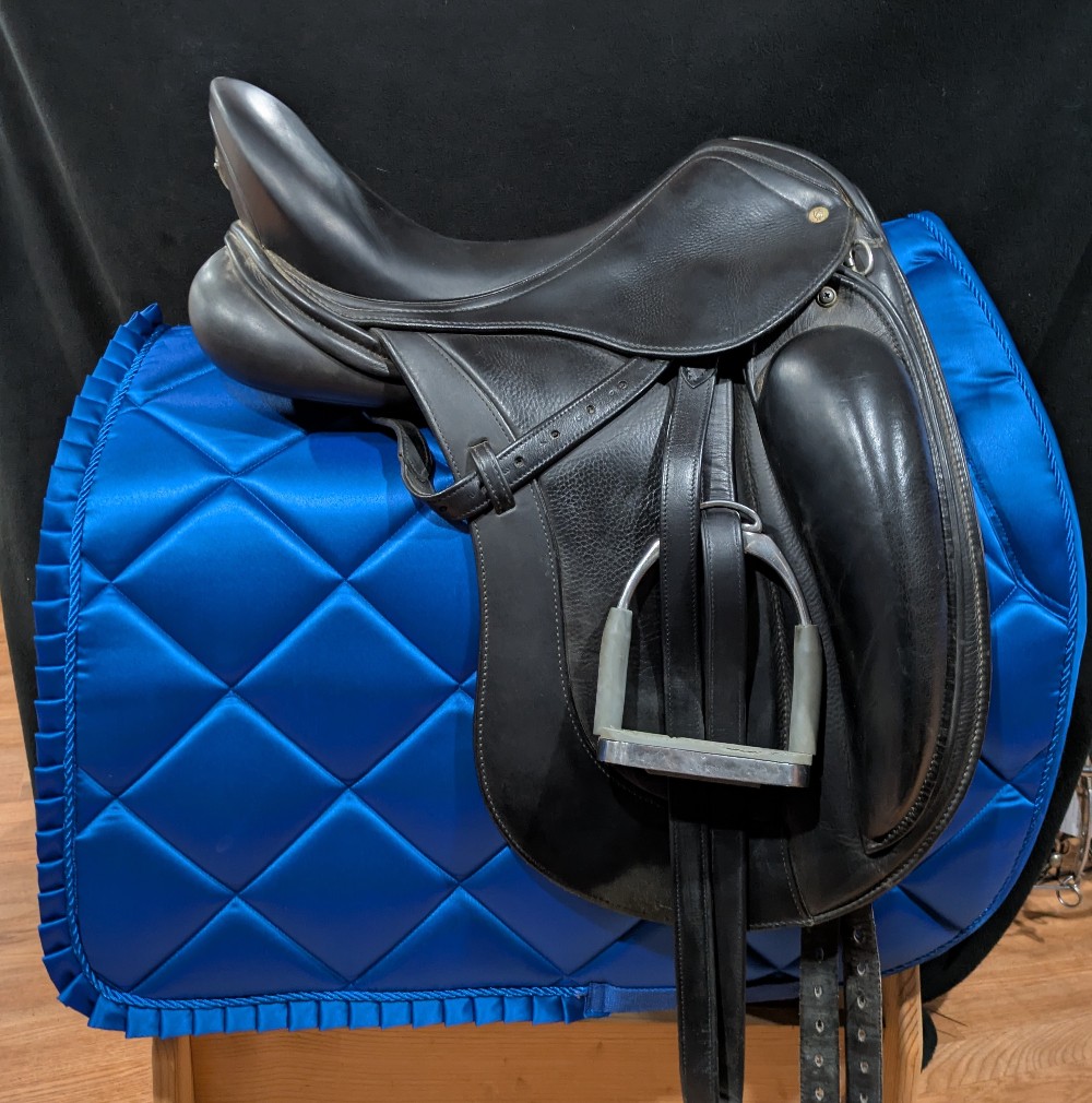 Pretty Schleese Heike Kemmer monoflap dressage saddle for your horse with withers! 17.5" medium, high wither estimated. (With serial number confirmation pending with Schleese once we receive email) Good used condition. Please see pictures for condition and serial number, and feel free to ask questions about this lovely saddle!