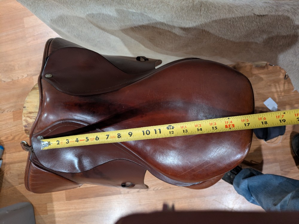 17.5" Circuit jump saddle. Stamped 3.5 fit, estimated medium fit. Used condition, Please see pictures for condition and comparison measurements and feel free to ask questions prior to purchase.